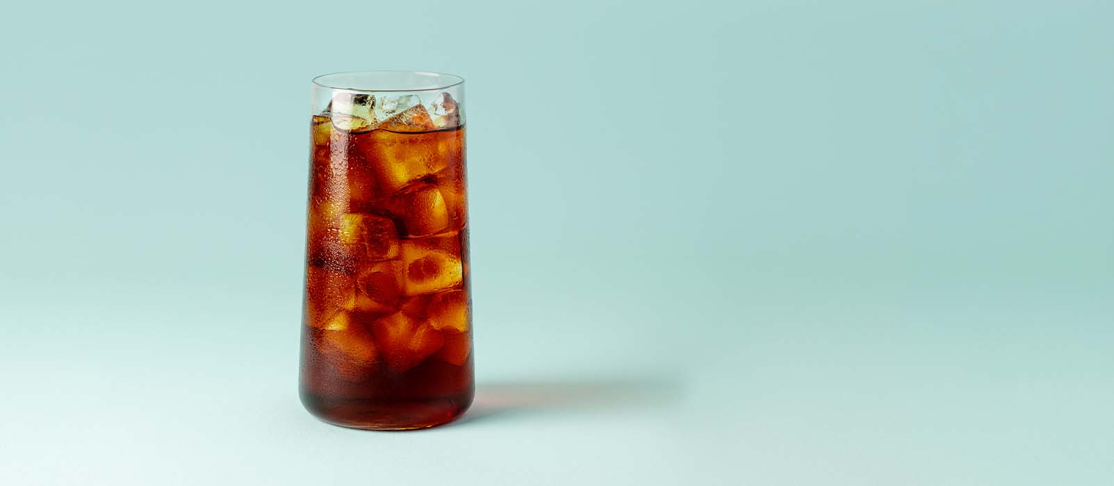 Next, fill a big glass with ice. Pour the coffee over the ice.